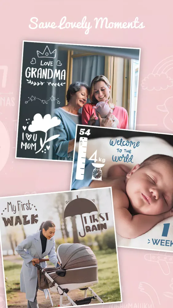 - Edit Photos with Custom Text: Add captions to your baby monthly pictures and pregnancy bump photos to capture important details and memories.