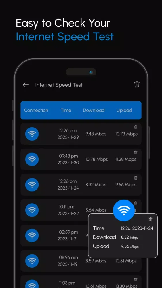 - Find precise upload and download speed details.