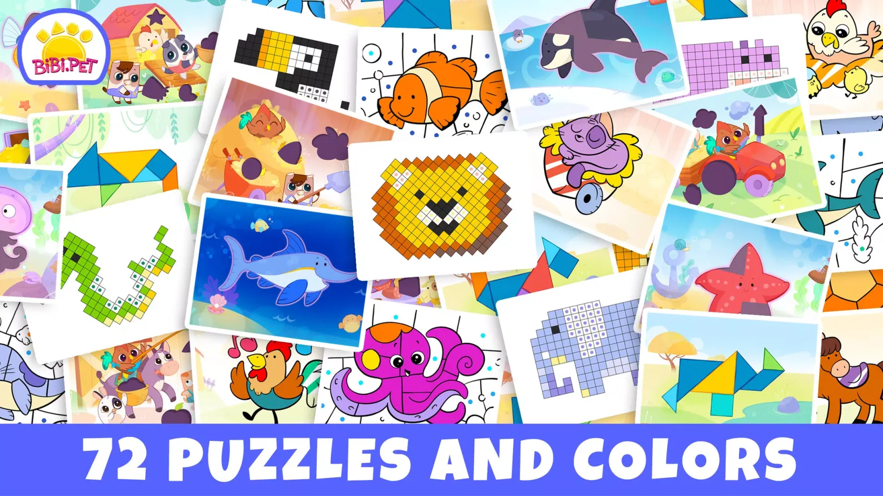 The game features 72 exciting activities, including classic puzzles, drawing, and coloring games. Two innovative game types, Color Pixel and Puzzle Tangram, introduce children to a world of colorful animals and puzzles that challenge their logical thinking and problem-solving skills. Each activity is thoughtfully crafted to engage young minds and nurture their curiosity.