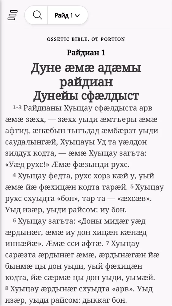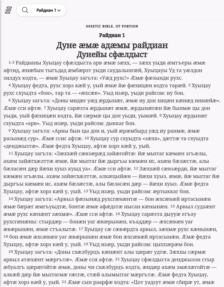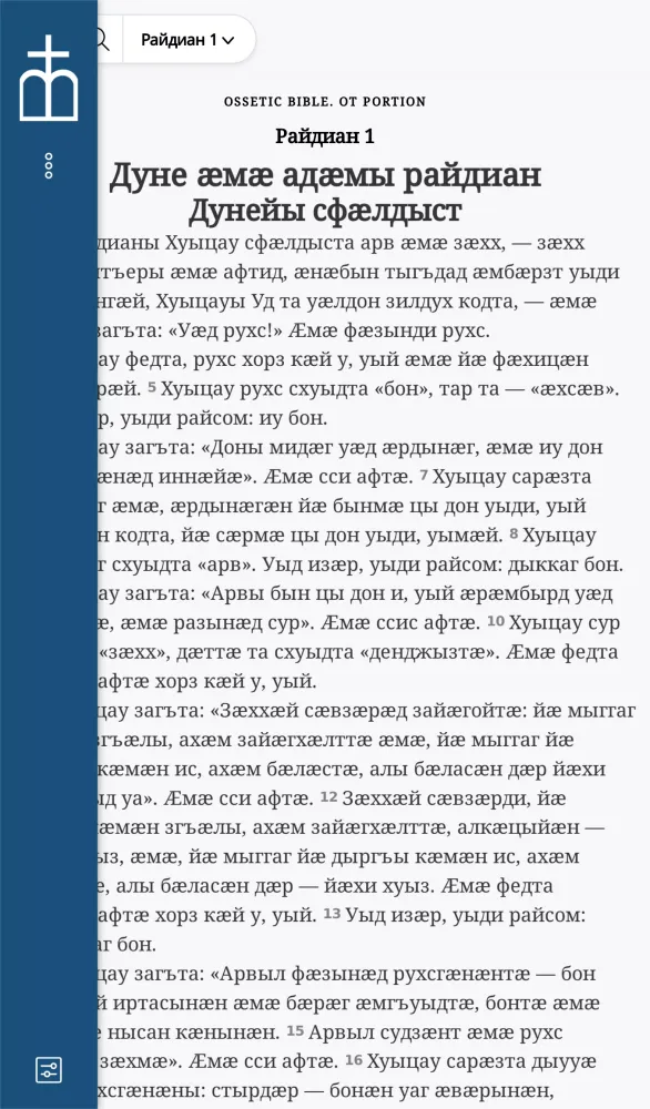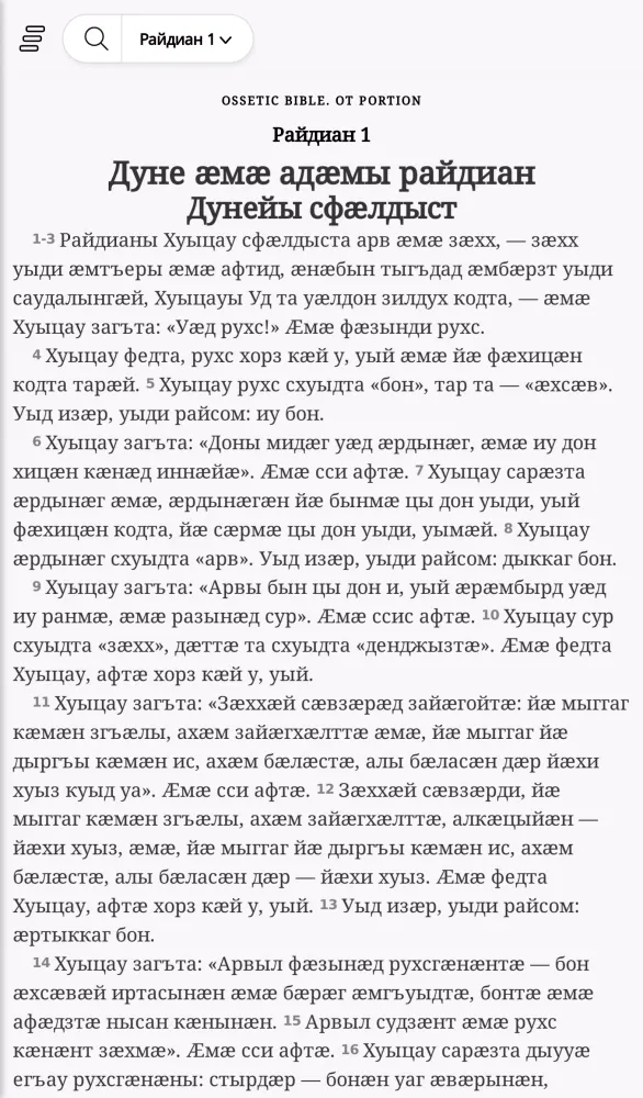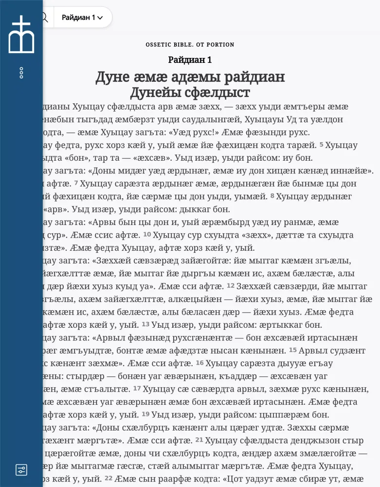 At its core, "Хуыцауы Дзырд иронау" offers an extensive collection of the Bible's texts translated into Ossetic. The app aims to provide users with a comprehensive and immersive experience, allowing them to explore the scriptures in their native tongue. This translation effort is part of a broader initiative led by the organization Уӕрӕсейы Библийы Ӕхсӕнад, which has been committed to preserving and disseminating religious texts since 2018. The app's primary goal is to ensure that these ancient teachings remain relevant and accessible to contemporary audiences.