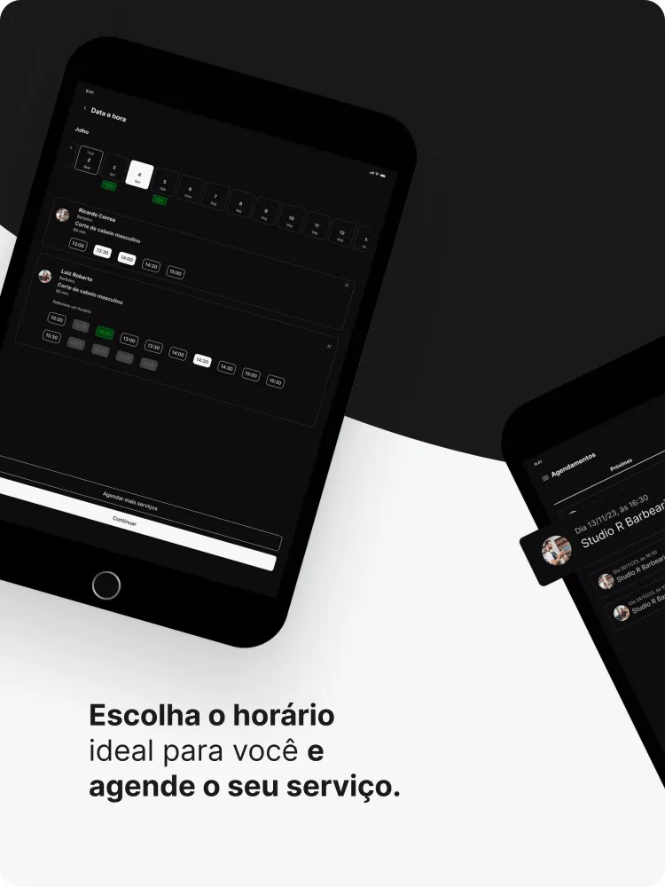 Welcome to the Studio R Barbearia appointment application! This user-friendly platform allows you to effortlessly manage your appointments from the comfort of your home or office. With just a few clicks, you can schedule your visit to one of our premier barbershops.