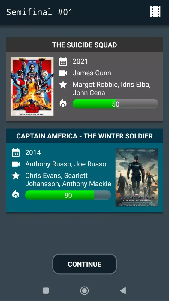 Feeling uncertain about the contenders in the current match? No worries! Clash of Movies offers a diverse array of films, ensuring there's always something new to discover. Even if you're stumped for tonight's movie night, this app might just provide that spark of inspiration you need. Whether you're tuning in for the daily movie battles or checking out the top 20 films globally, Clash of Movies guarantees to bring you fresh recommendations and a delightful dose of entertainment each day.