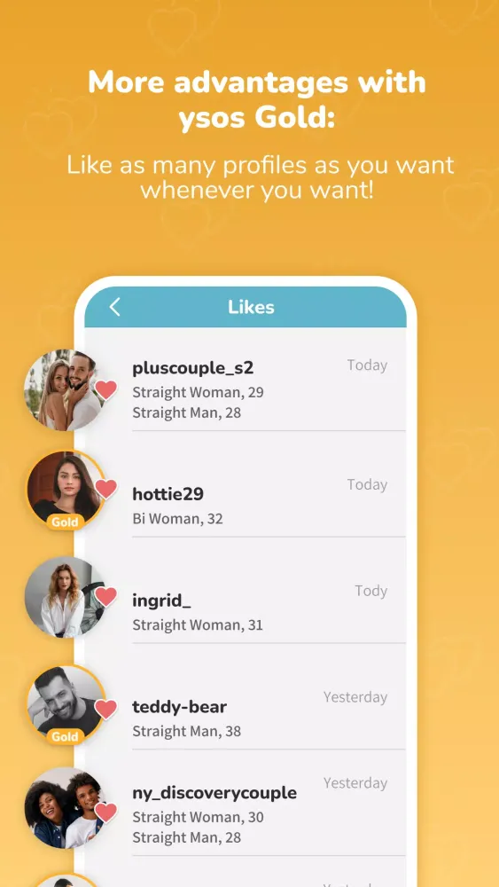 There's no cost to communicate on ysos. Once you've matched with someone and they've liked you back, you can send unlimited private messages without any subscription fees. For those who desire additional benefits, such as exclusive perks and advanced features, ysos Gold is available as an optional upgrade.