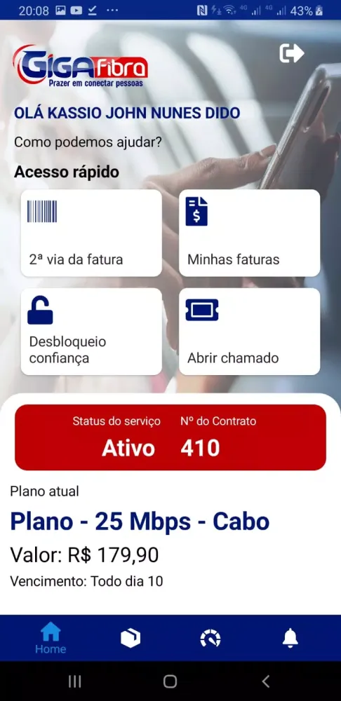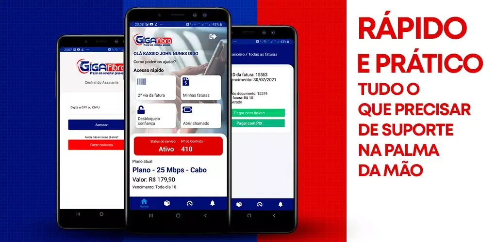 Experience the ease and efficiency of managing your Gigafibra services with an app that’s designed to be intuitive, fast, and reliable. Download the Gigafibra app today and take control of your services in a way that suits you best!