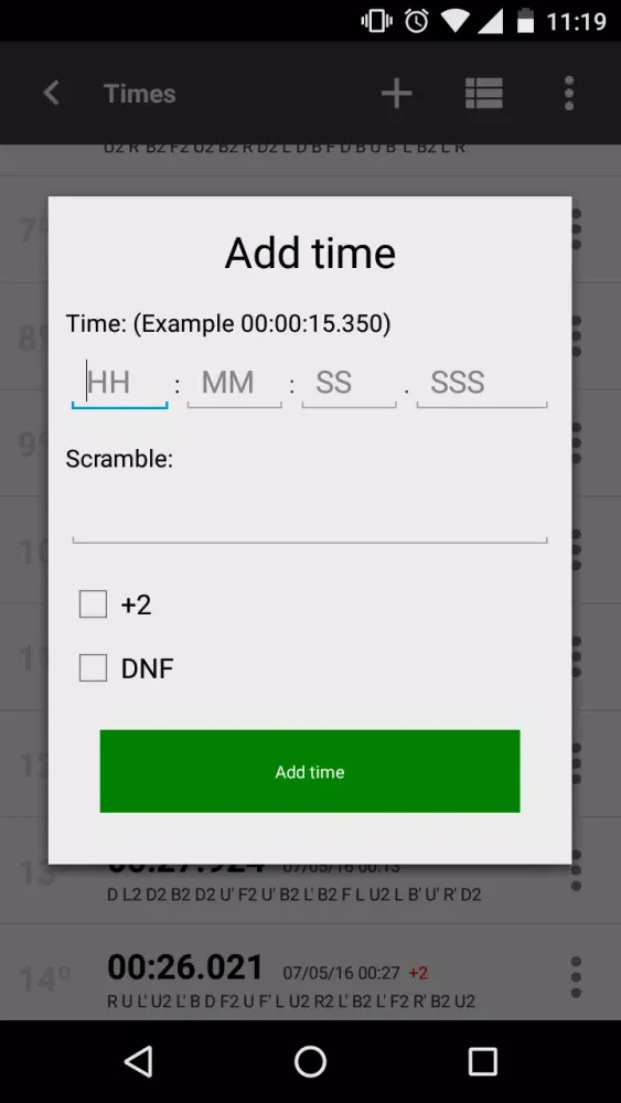 One standout feature of Cube Timer is its ability to generate official scrambles directly from championship-approved generators. This ensures that each solve session feels legitimate and prepares users for real-world competitions. For those who want to enhance their solving skills further, the app offers an inspection time feature complete with an alert sound. This helps simulate competition conditions where participants must quickly assess the scrambled puzzle before starting their timer.