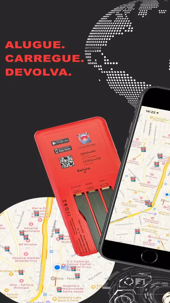 Monstro operates as a power bank sharing network, ensuring that you always have access to portable batteries when your device runs low on charge. Imagine this scenario: you’re in the middle of an important call or sending a critical email when your battery indicator turns red. With Monstro, you no longer have to worry about being stranded without power. Simply locate one of our strategically placed charging totems—available across major areas within the city—and grab a fully charged power bank to get back online instantly.