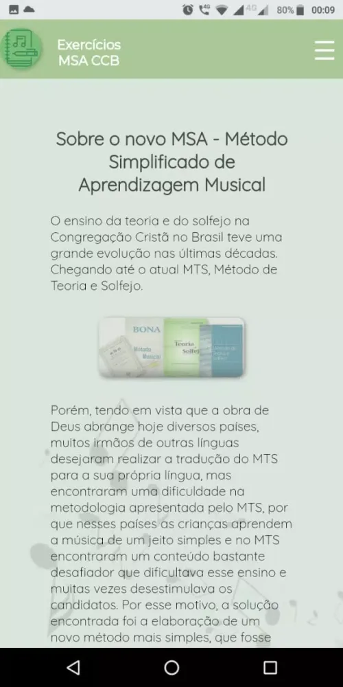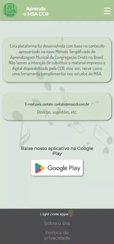 The "MSA CCB Mobile" application is a free platform designed to assist users in studying the new Simplified Musical Learning Method of the Christian Congregation in Brazil. Whether you're a beginner or someone looking to refine your skills, this app offers a comprehensive suite of features that cater to different aspects of music education. Its primary goal is to complement the official materials provided by the congregation, ensuring learners have access to additional resources to enhance their understanding and practice.