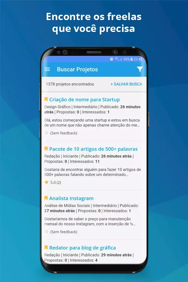 If you have any feedback or suggestions for improving our app, we’d love to hear from you! Please send your thoughts to support@99freelas.com.br. Together, let’s continue building a thriving community where talent and opportunity meet seamlessly.