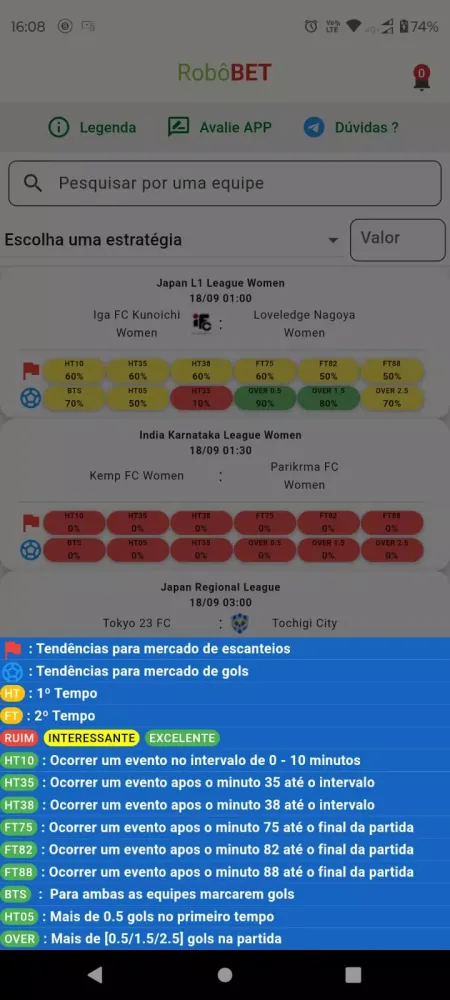 Our application is designed to make your interaction with live football matches effortless and enjoyable. With Robô BET, you have the power to create custom filters tailored to the specific matches you're interested in. This means you can focus on the games that matter most to you without having to sift through irrelevant data.