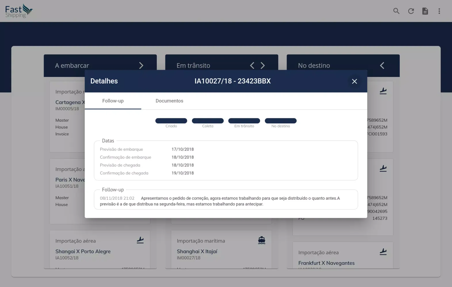 The "Fast Tracking" application is designed exclusively for the use of Fast Shipping customers. This intuitive and user-friendly application streamlines the customer experience by providing an effortless way to stay informed about the status of shipments.
