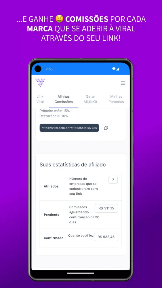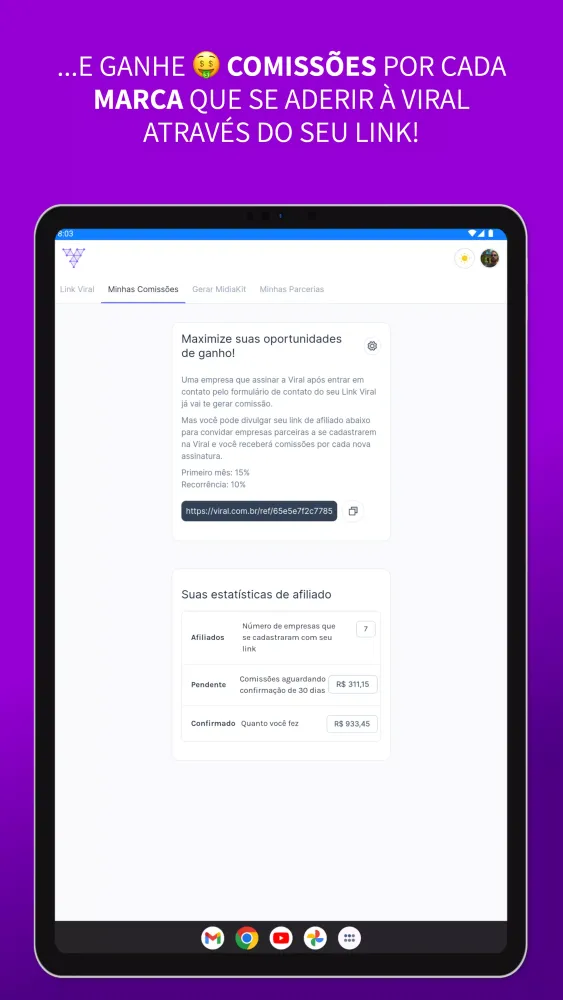 Expand your reach with a personalized biolink that showcases your partnerships while providing direct access to your content. This feature allows followers to engage with your publications and convert directly into sales. With Viral Link, you can attract more partnership proposals, increase your publication frequency, and monitor performance using detailed analytics. Earn commissions every time a company registers with Viral through your unique link.