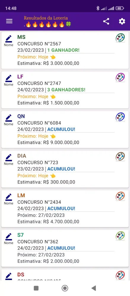 "Resultados da Loteria" is a comprehensive Android application designed to simplify and enhance your lottery experience. Whether you're a seasoned player or new to the world of lotteries, this app provides everything you need to stay informed, analyze trends, and manage your bets efficiently. The app focuses on delivering a seamless user experience through its intuitive interface and advanced features.