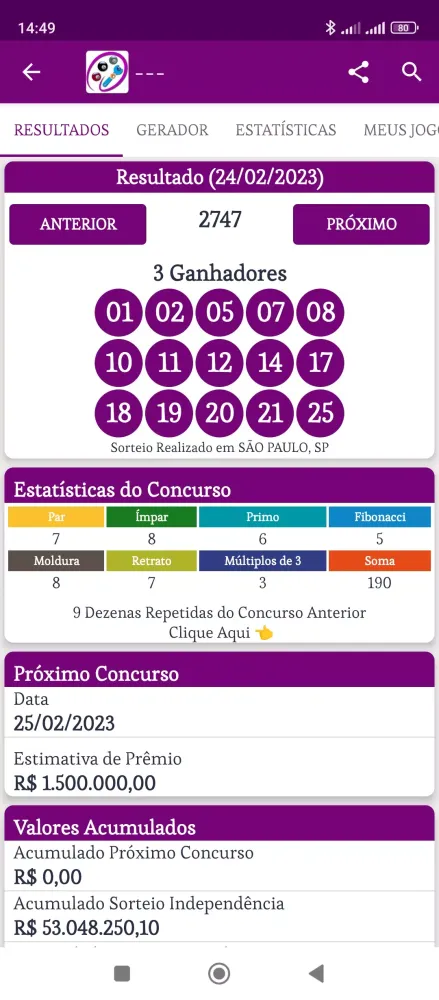 For those seeking deeper insights, the app provides advanced statistical tools. Users can delve into detailed analyses of number frequencies, delays, and sequences. Visual aids, such as charts and graphs, make complex data more accessible. Additionally, the app highlights recurring combinations, helping you identify potential hot streaks. You can even track the largest jackpots across different lotteries, ensuring that you never miss out on a chance to win big.