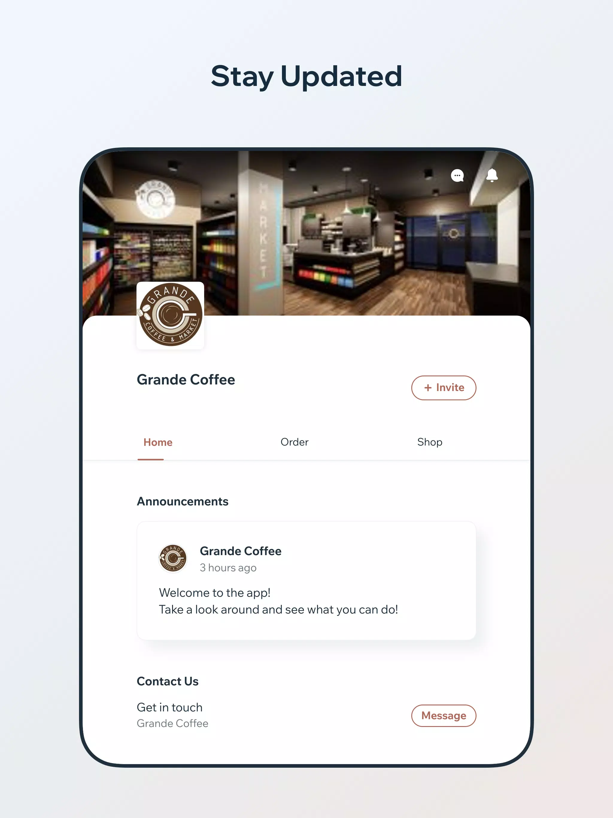Welcome to the Grande Coffee & Market app, your ultimate companion for a seamless and enjoyable coffee experience. Designed with convenience in mind, this application allows you to order ahead, sign up for exclusive offers, join our loyalty program, and earn points all in one place. Whether you're a regular customer or just discovering our brand, the app is crafted to make your interactions with Grande Coffee as smooth and efficient as possible.