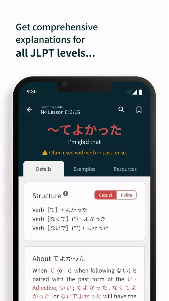 Comprehensive Grammar Practice: The app provides extensive practice exercises covering a wide range of Japanese grammar points. Each grammar point includes detailed explanations, examples, and usage notes to ensure you fully understand and can apply what you've learned.