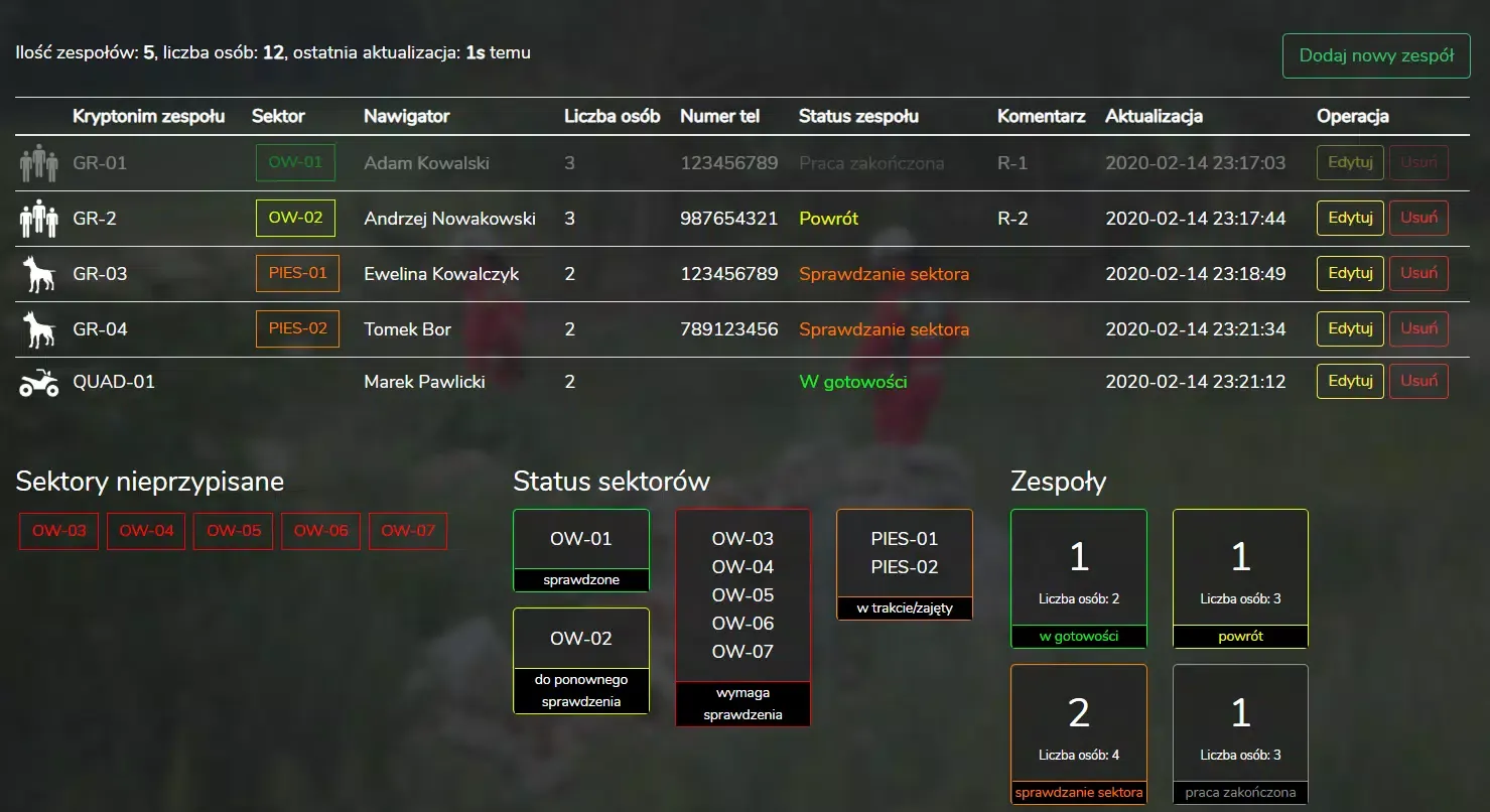 SIRON is a powerful application designed to support the search for missing persons, acting as a comprehensive search and rescue tool. In critical situations, real-time positioning of search participants becomes crucial. The coordinator must be able to quickly provide accurate coordinates to other teams or services, ensuring efficient and timely assistance.