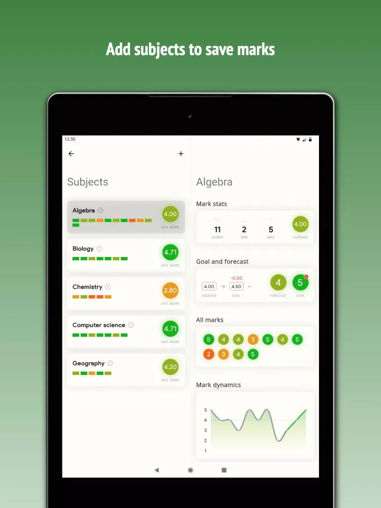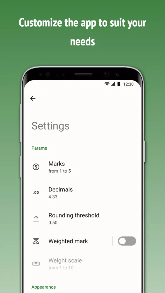 At the heart of the application lies its ability to calculate your average score quickly and accurately. This functionality allows users to input their grades effortlessly while offering flexibility in choosing the right grading system. For instance, the app supports a customizable rating scale that can be adjusted up to 12 points, catering to diverse educational systems worldwide. Additionally, it provides an option to compute the weighted average mark, ensuring precision when certain subjects carry more importance than others. To enhance usability further, there’s also an adjustable threshold for rounding the final average mark, giving users full control over how they interpret their performance metrics.