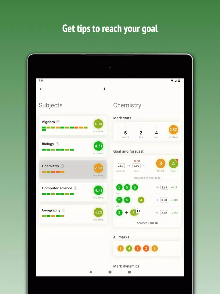 Another standout feature of "Want mark!" is its capability to save marks in the context of specific subjects. This organization method makes it simple to monitor individual subject performances without losing sight of overall progress. Furthermore, the app goes beyond mere calculations by offering practical tips on how to improve and achieve desired results. These recommendations are crafted based on real-world strategies used by successful students, helping you optimize study habits and maximize potential outcomes.