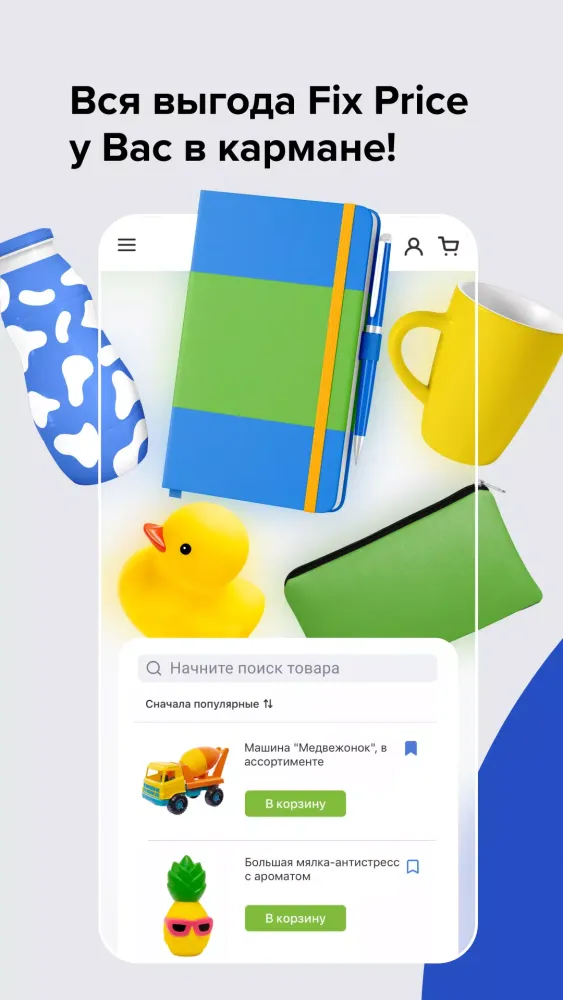 Join the Fix Prime club and unlock exclusive benefits by registering your Fix Prime card directly within the app. Keep track of your accumulated points, activate promotional codes, and stay updated with the latest deals, new arrivals, and seasonal offers from Fix Price. Our app also lets you view your purchase history, making it easier to manage your budget and discover new favorites.