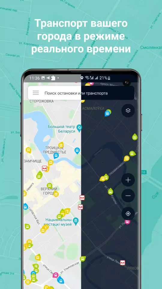All city transportation is displayed in real-time on the map. Watch your bus, trolleybus, streetcar, or shuttle in action. Now you know exactly where your bus is at any given moment.