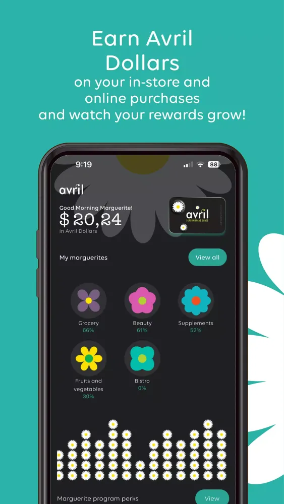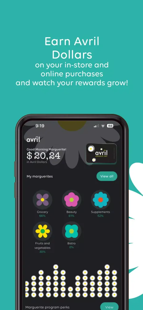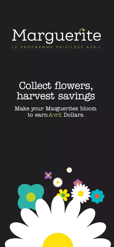 Marguerite, the rewards program from Avril, is more than just a loyalty initiative; it's a tool designed to help you nurture your savings while enjoying the benefits of shopping at one of Quebec's leading healthy supermarket chains. At its core, Marguerite empowers you to cultivate the art of saving through a seamless digital experience. Whether you're shopping in-store or online, Marguerite ensures that every purchase contributes to your growing savings.