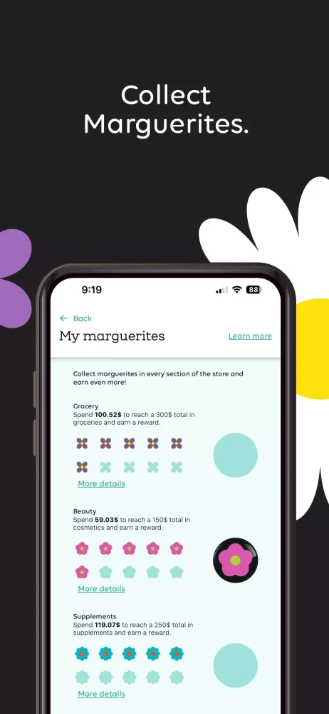 The Marguerite app serves as your personal financial gardener, allowing you to track your progress, view your account balance, and stay updated with exclusive offers. It transforms the act of shopping into a rewarding journey where you not only shop for healthier choices but also watch your savings blossom over time. The app’s intuitive design makes it easy to manage your Marguerites—virtual points that accumulate with every purchase—and transform them into tangible savings.