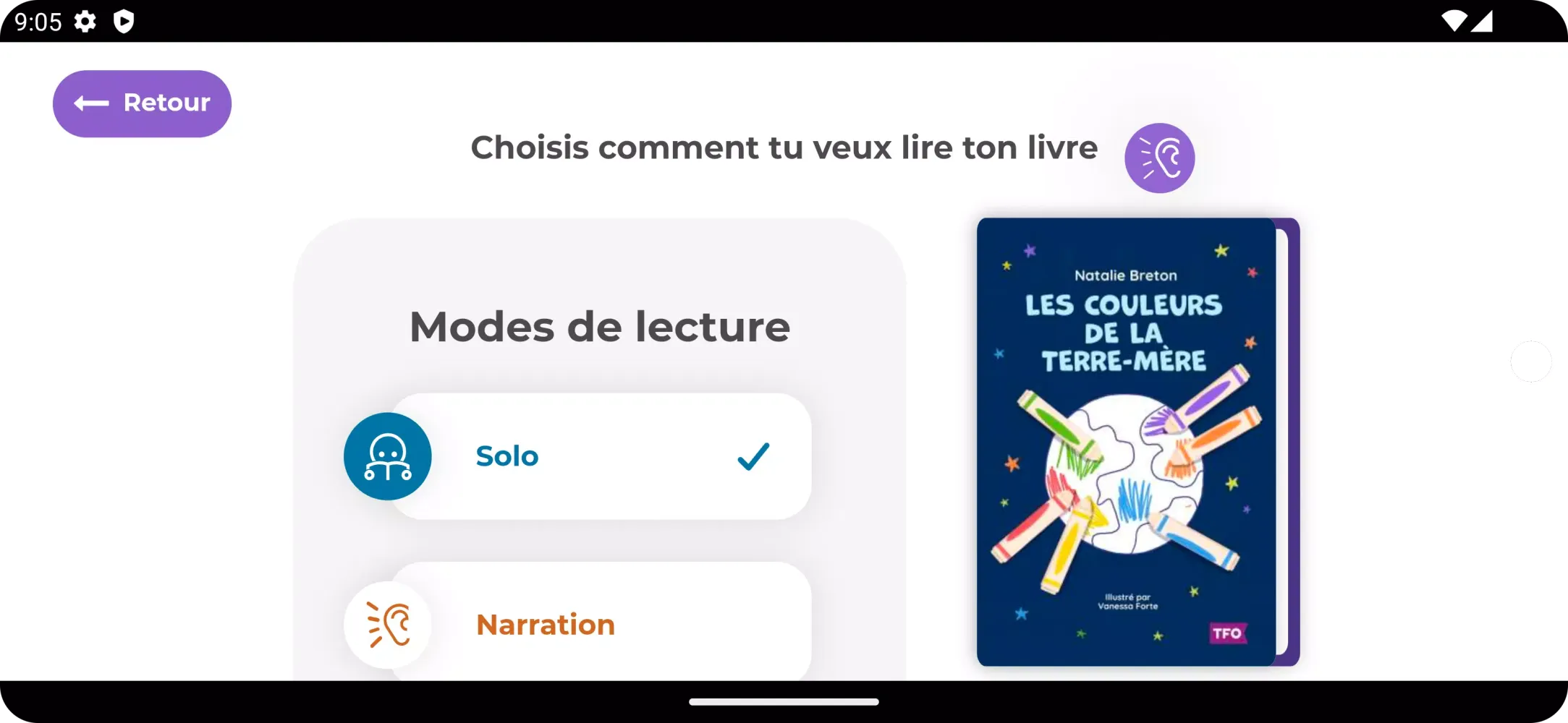 - Narration Mode: Listen to the book being read aloud.