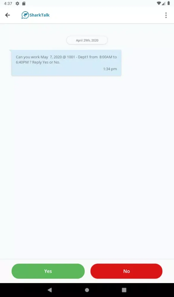 One of the standout features of SharkTalk is its ability to notify employees instantly when new shifts are posted. This real-time communication capability helps employees make quick decisions, ensuring that staffing needs are met promptly. Additionally, employees can respond directly to these notifications through the app, indicating their interest in taking on the shift. Once a response is submitted, the system provides instant feedback, confirming whether the employee has been successfully assigned to the shift or not. This streamlined process eliminates unnecessary back-and-forth communication, saving both time and resources.