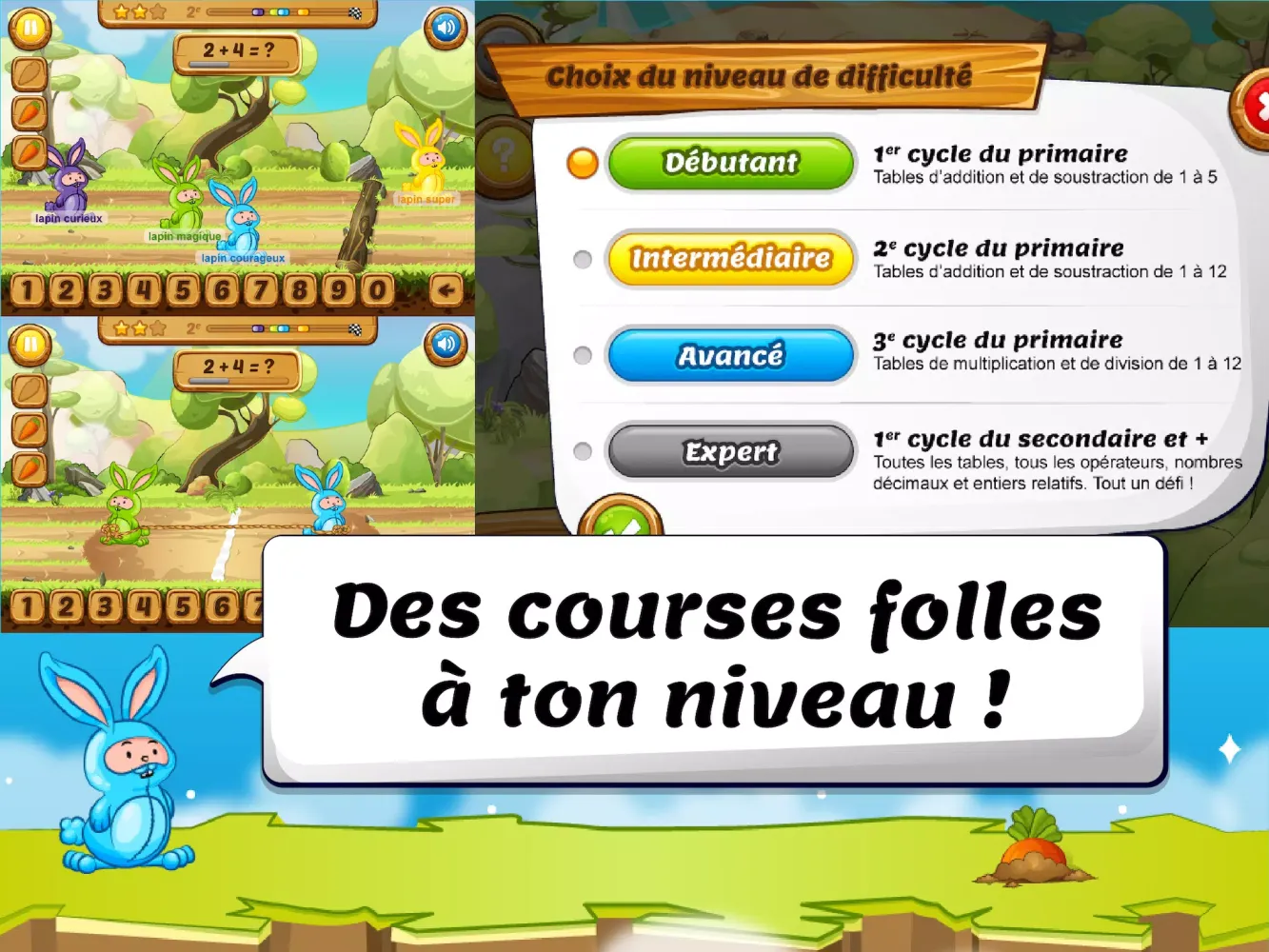 The core idea behind Fin Lapin is simple yet powerful: dive into the world of numbers and enhance your ability to perform multiplications, divisions, additions, and subtractions effortlessly. The app transforms traditional math drills into a playful adventure where you solve equations while embodying a cute little rabbit character. This approach not only makes learning enjoyable but also encourages continuous engagement by breaking down complex concepts into bite-sized challenges.