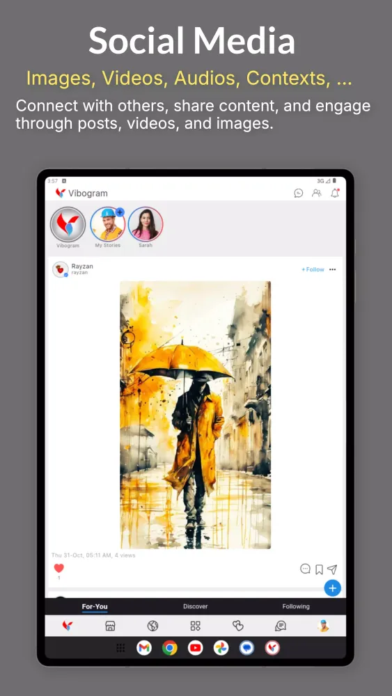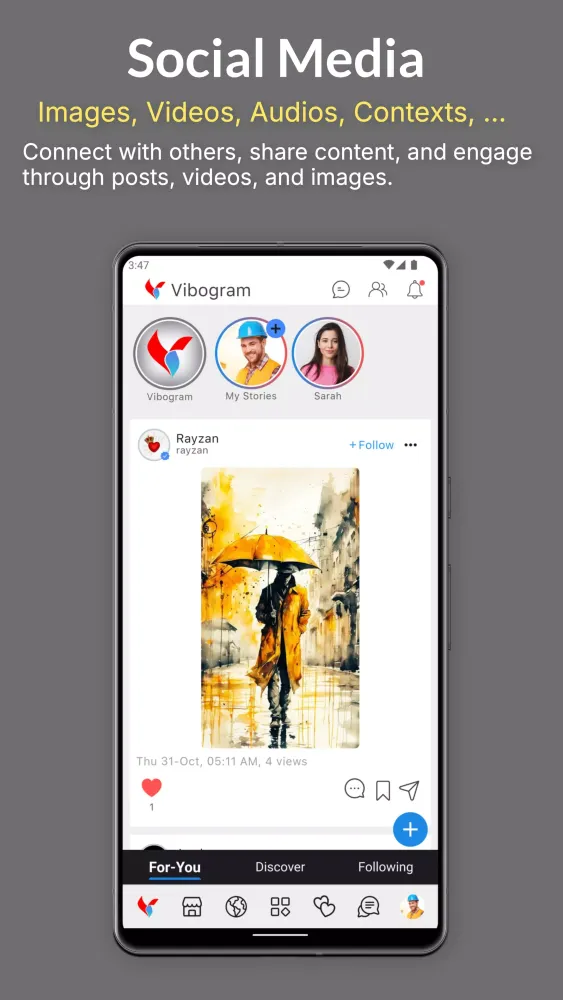 Stay connected with friends and family through posts, stories, and reels. Share your moments, showcase your creativity, and enjoy captivating content from people you care about. Vibogram’s social media features ensure that you never miss a beat in your relationships.