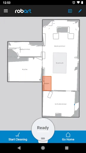 Always stay in the know about cleaning schedules, progress, and the remaining duration of the cleaning run. Assuming there are three rooms to clean in your apartment, ROB-Connect will tell you in which order it will clean them and how long it will take.