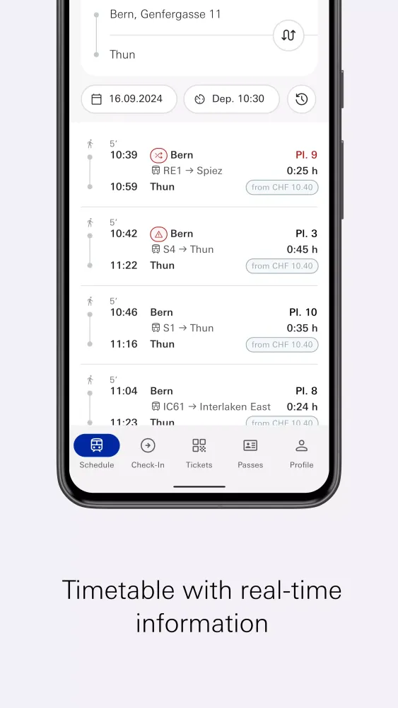 - Purchase public transport tickets for trains, buses, trams, and cable cars throughout Switzerland.