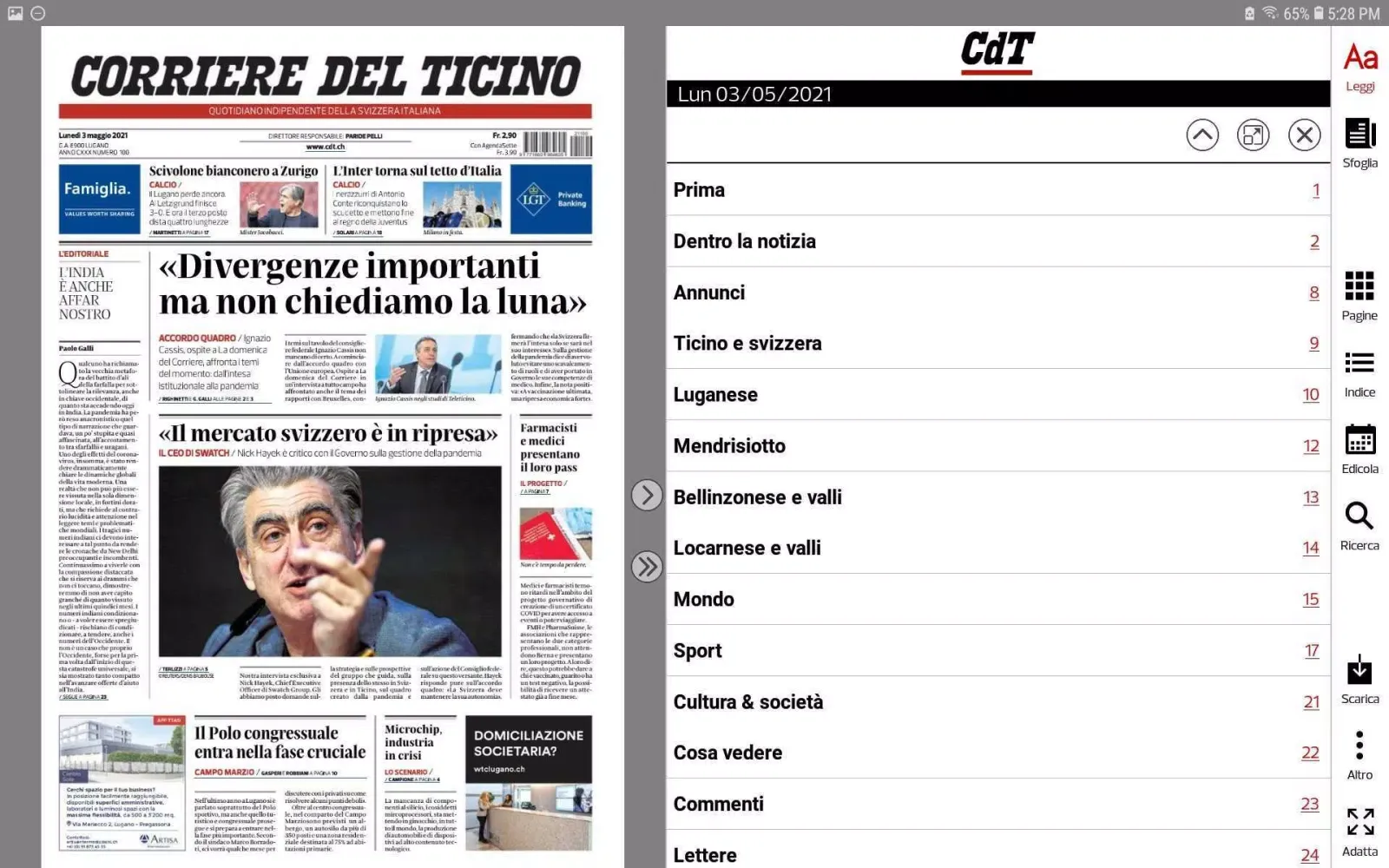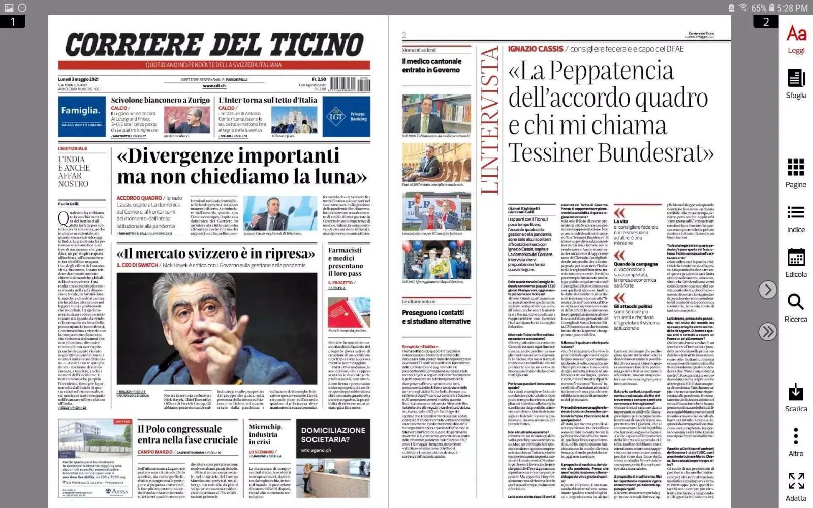 Are you ready to experience the convenience of digital newspapers at your fingertips? Download the new free version of the Corriere del Ticino Digital today! With this intuitive application, you can now access the latest edition of the Corriere del Ticino effortlessly. Starting from 6 AM each day, you'll be able to dive into the world of current events, enjoy beautifully rendered pages, and immerse yourself in an engaging reading experience.