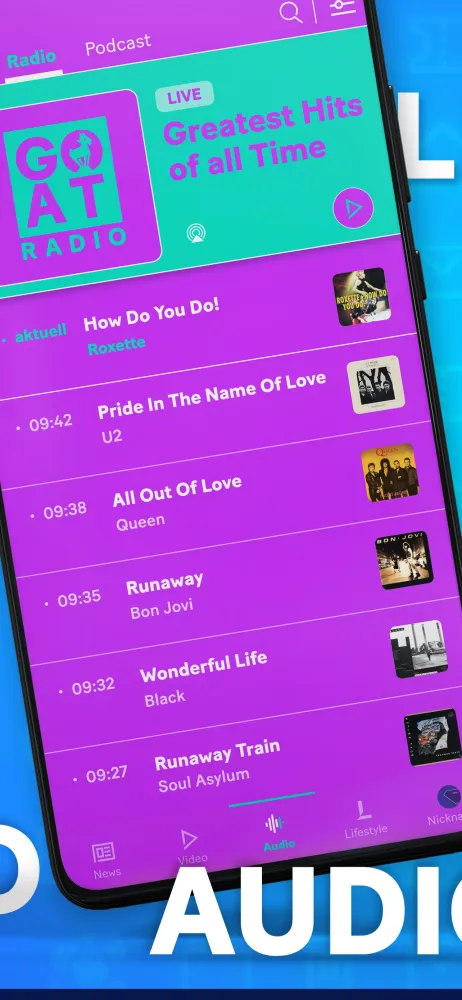 Beyond textual content, the app excels in multimedia offerings. Through its dedicated video portal, users gain access to curated clips prepared by expert editors. Live broadcasts and special events are streamed directly within the app, providing an immersive viewing experience without requiring separate subscriptions. For those who prefer auditory consumption, there’s GOAT Radio—a channel dedicated to playing timeless pop-rock hits from the '80s while keeping listeners updated with hourly news segments covering weather forecasts and traffic conditions. Furthermore, avid podcast enthusiasts will appreciate the selection available, including popular titles like “Other League.”
