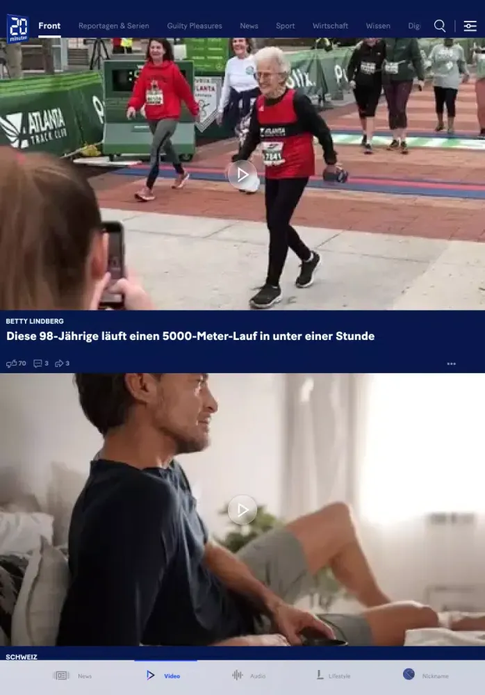 A unique aspect of "20 Minuten" lies in its personalization options found under the Profile tab situated at the bottom-right corner of the interface. Here, users can personalize their avatar image and nickname, review profile details, track reading histories, and explore additional metrics related to their usage patterns. Another notable feature is the Cockpit area where settings such as view adjustments, preferred languages, and notification configurations are managed effortlessly. Accessible here are supplementary resources like e-papers, engaging games, interactive gadgets, and promotional offers from reputable brands.