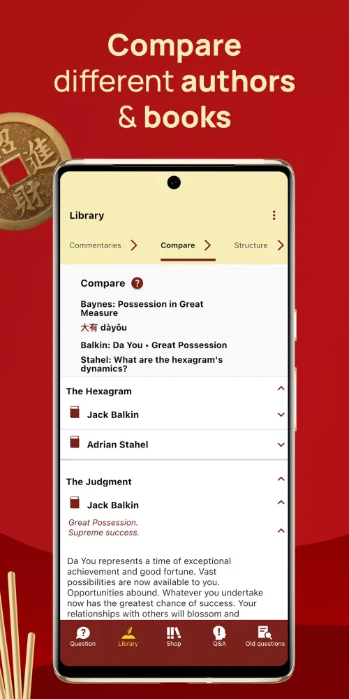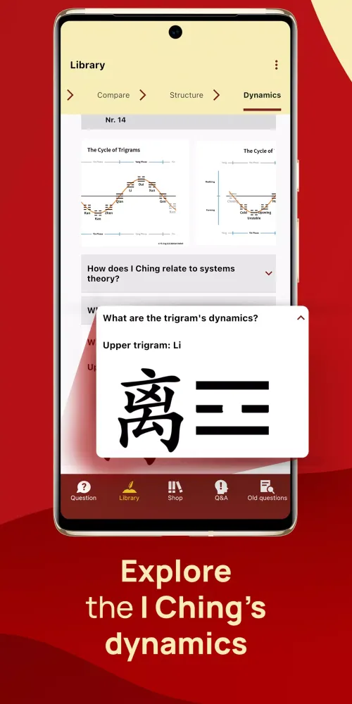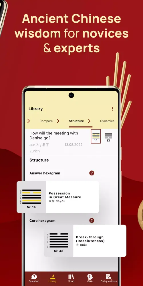 Authentic Divination Techniques: The app utilizes traditional methods like yarrow stalks and coin tosses, accurately digitized to offer an authentic experience. Whether you prefer the classic methods or digital convenience, the Yi Jing Library caters to both.