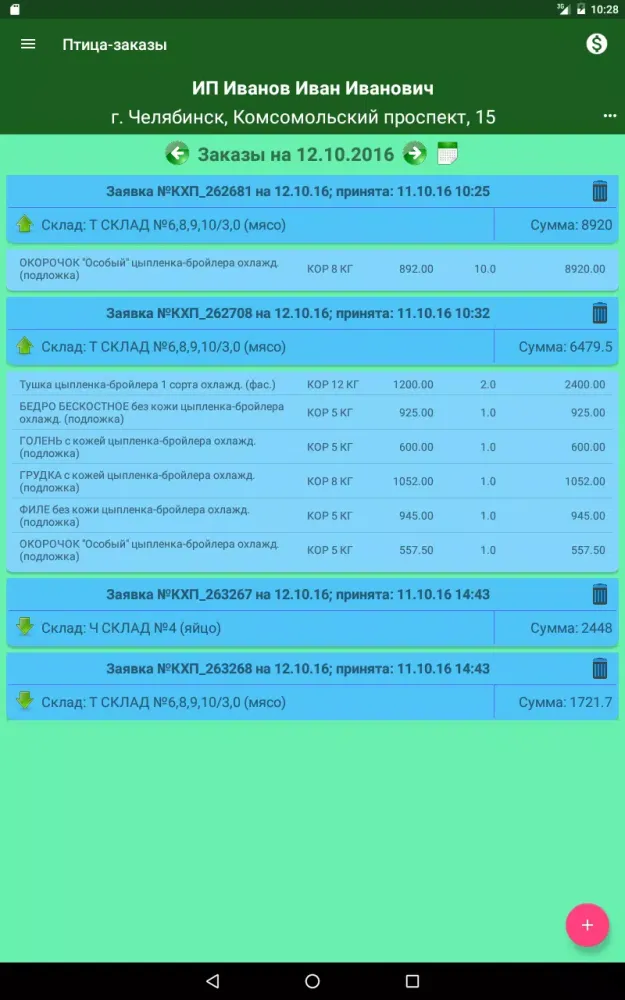 Overall, the "Franchise - Cherbarkulskaya Bird" application is a comprehensive solution designed to enhance the operational efficiency of contractors within the franchise network. By providing tools for order management, debt tracking, and multi-location coordination, the application supports contractors in achieving their business goals while maintaining strong ties with the central management system. Its user-friendly interface and robust features make it an indispensable asset for anyone involved in the franchise's supply chain operations.