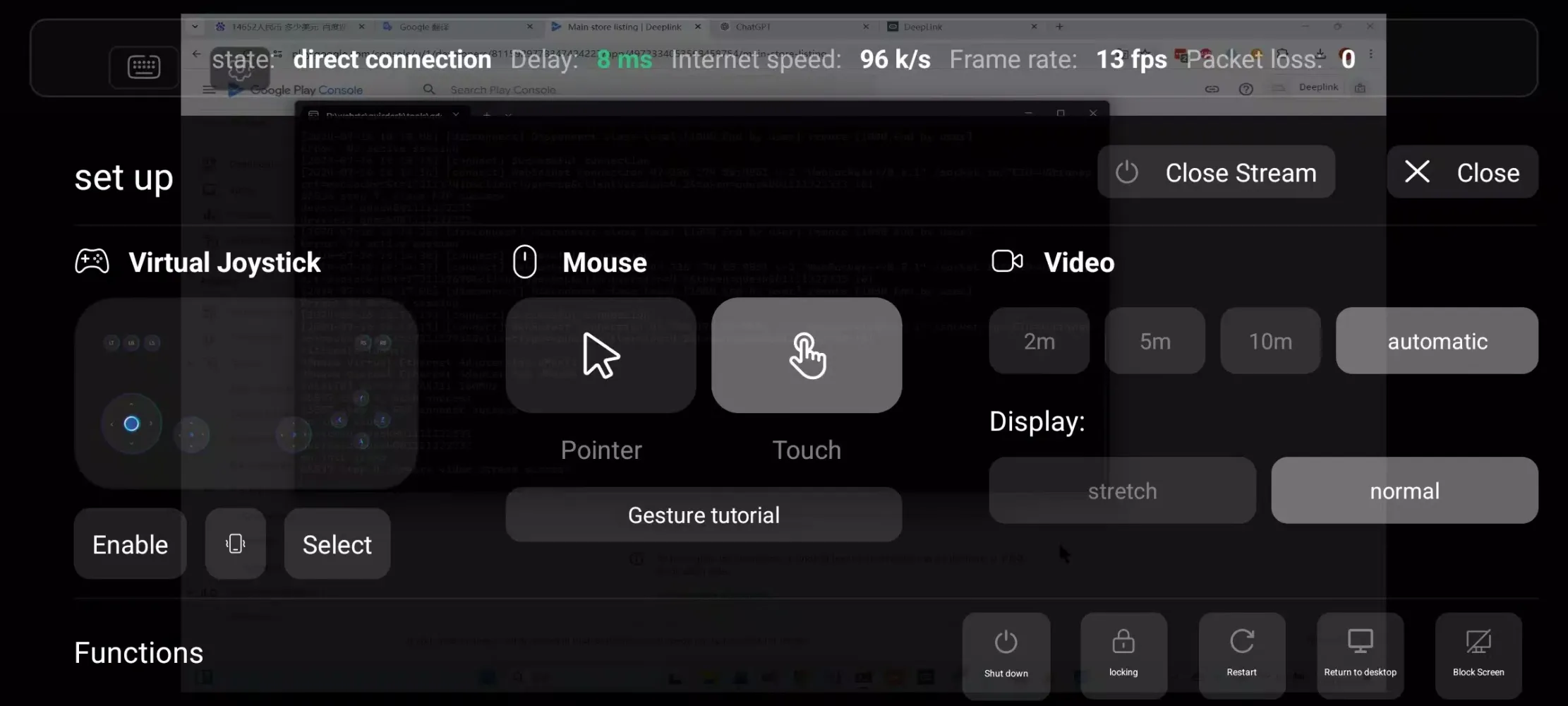 The touchscreen feature in Deeplink allows you to simulate game controllers, keyboards, and mice directly from your mobile device. Customize multiple key sets or combinations for different games, making it easy to adapt to various environments for both work and gaming needs.