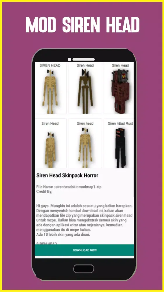 The download process is straightforward. Once you click the download button, you'll receive a zip file containing the Siren Head skin pack for MCPE. Unzipping the file gives you access to a collection of 10 additional skins, providing ample opportunities to customize your character and enhance your gameplay experience. Each skin is meticulously designed to reflect the haunting essence of the Siren Head, ensuring that every aspect of the mod aligns with its horror theme.
