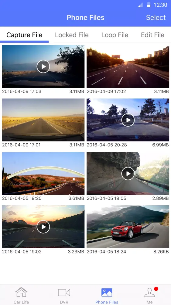 Access files stored on your phone and those downloaded from the DVR. View loop, locked, and captured files with ease. You can play back any file directly within the app, or choose to share or delete them as needed. This feature ensures that you have complete control over your recorded content.