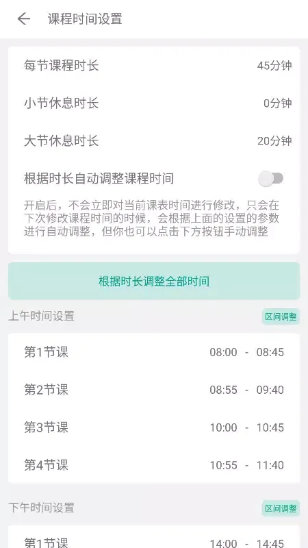 - Customizable Timings: Set the start and end times for each class period.