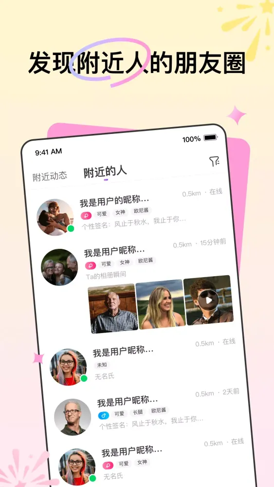 - Discover Nearby Users: Browse through the profiles and posts of people living close to you.