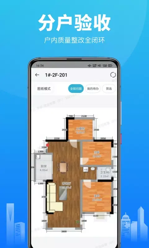 The SmartBuild Mobile Inspection app covers all stages of the handover process, including pre-handover inspections, unit-by-unit checks, move-in inspections, and maintenance services. It caters to both fully-finished and bare unit inspections, ensuring full-cycle issue management with zero oversight on delivery risks. The app facilitates paperless mobile inspections, data accumulation, and experience sharing, helping businesses and projects build homeowner loyalty and achieve mutual success with clients.