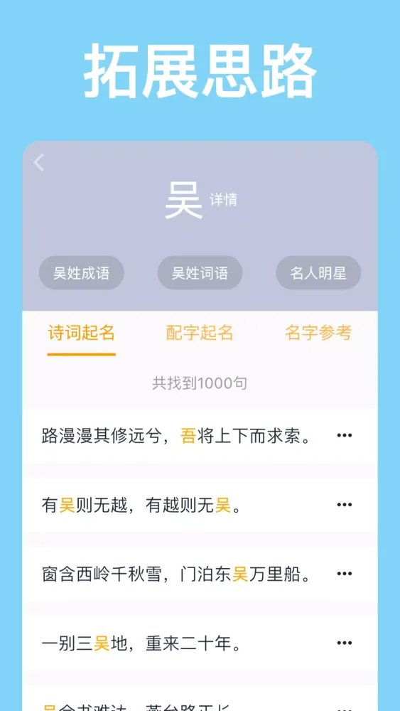 The app also leverages natural relationships and imagery to create meaningful names. For instance, "石头|玉石" (shí tóu | yù shí) can be creatively combined as "石成玉" (Shí Chéng Yù), while "水|天" (shuǐ | tiān) can become "水同天" (Shuǐ Tóng Tiān). Additionally, high-frequency words like "方知有" (fāng zhī yǒu), "耿直" (gěng zhí), "高远" (gāo yuǎn), and "吴所谓" (Wú Suǒwèi) offer further creative naming opportunities. The app also includes vivid imagery-based names like "牛归晚" (niú guī wǎn), "牛耕墨" (niú gēng mò), "田休歌" (tián xiū gē), "江起云" (jiāng qǐ yún), and "林见鹿" (lín jiàn lù).