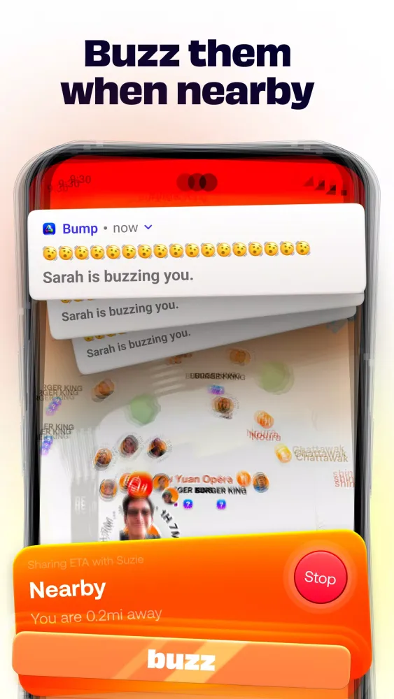 - Proximity Alerts: Buzz your friends when you're nearby to grab their attention.