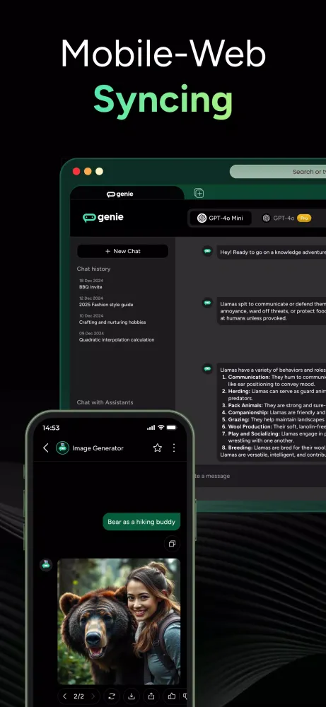 Genie, the Chatbot AI Assistant - Genie, is a groundbreaking application designed to transform the way you interact with artificial intelligence. Built on cutting-edge technologies such as GPT-4o, Gemini, Grok, Deepseek, Qwen, and Claude, this app offers unparalleled support and assistance tailored to meet your diverse needs. Whether you're looking for answers to complex questions, seeking creative inspiration, or simply wanting to engage in friendly conversation, Genie stands ready to assist.