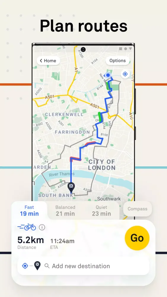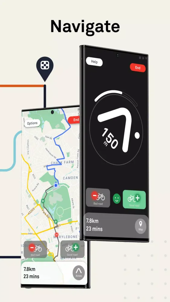 With Beeline, navigating your journey is as simple as pressing a button. The app provides clear directions on the screen, whether you're using the Velo or Moto devices or directly within the app itself. The innovative 'smart compass' feature ensures you are always heading in the right direction, providing a smooth and distraction-free ride. No more worries about your phone falling off the handlebars or distracting you during your ride.