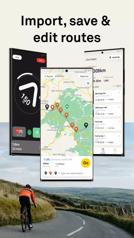 If you prefer to plot your own routes, Beeline allows you to do just that. You can easily import your own GPX files for road, mountain bike, hybrid, motorbike, or gravel journeys. Once imported, Beeline will guide you through the chosen path, making sure you stay on track.