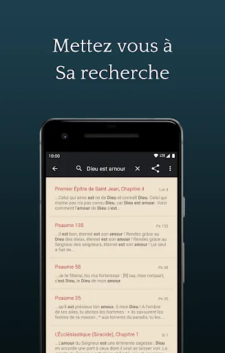 - Rechercher et méditez un passage de la Bible grâce au moteur de recherche intégré.