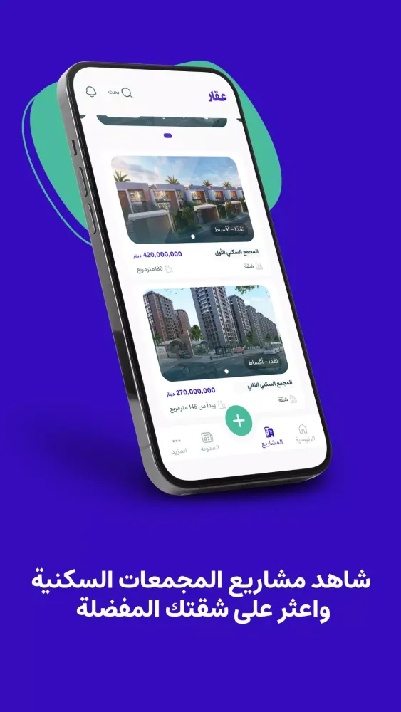 Given the importance of residential complexes and ongoing projects in Iraq, the app features a dedicated section for this type of property. View residential complexes with detailed information including floor plans, number of units, available spaces, amenities, prices, and more.